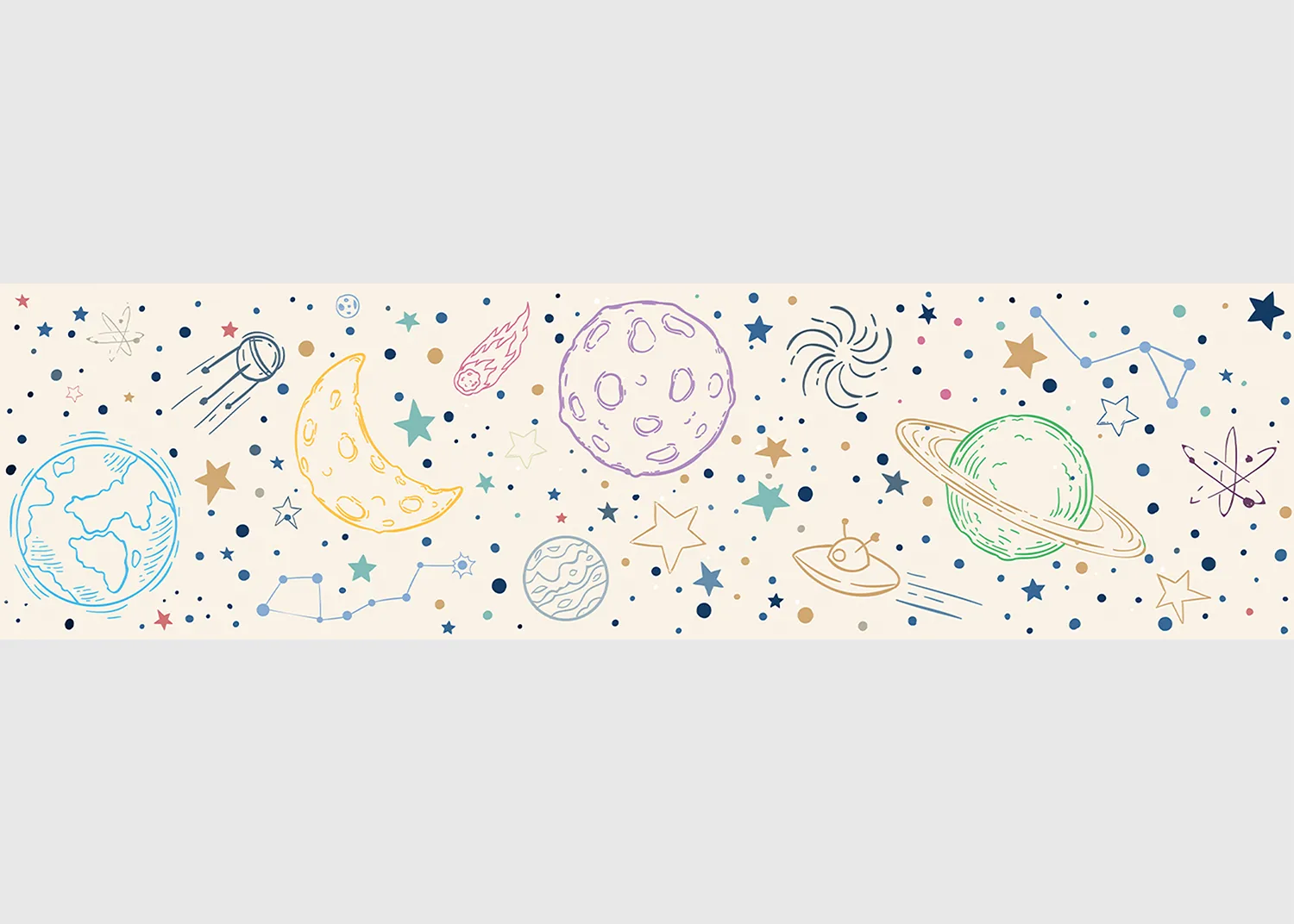 Rozjasněte pokoj svého dítěte s našimi bordurami na zed‘ Béžový Kreslený Vesmír. Bordury jsou vytvořeny tak, aby do každého prostoru vnesly kromě nádechu hravosti také teplo a radost.
