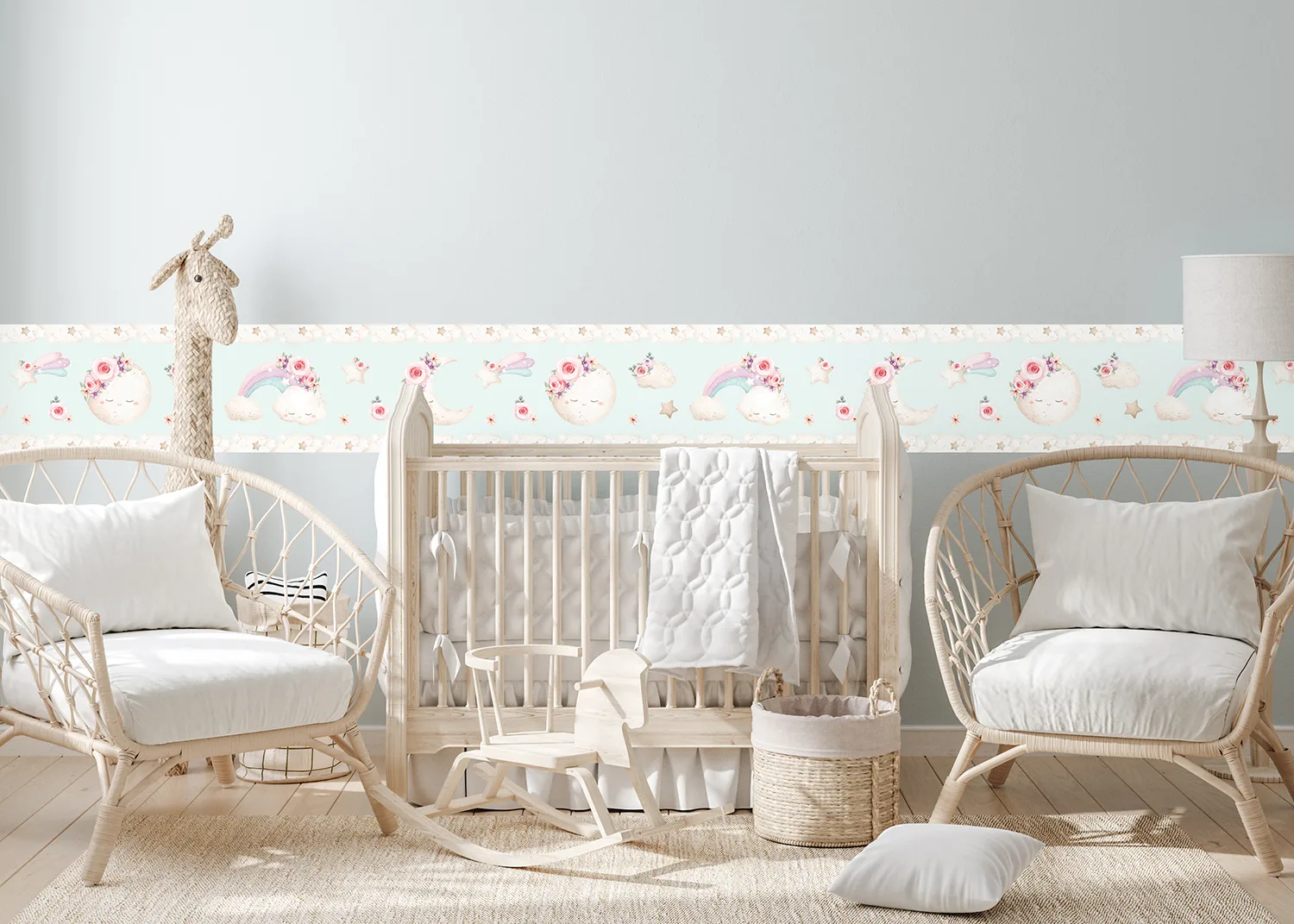Rozjasněte pokoj svého dítěte s našimi bordurami na zed‘ Modrý Akvarelový Měsíc. Bordury jsou vytvořeny tak, aby do každého prostoru vnesly kromě nádechu hravosti také teplo a radost.