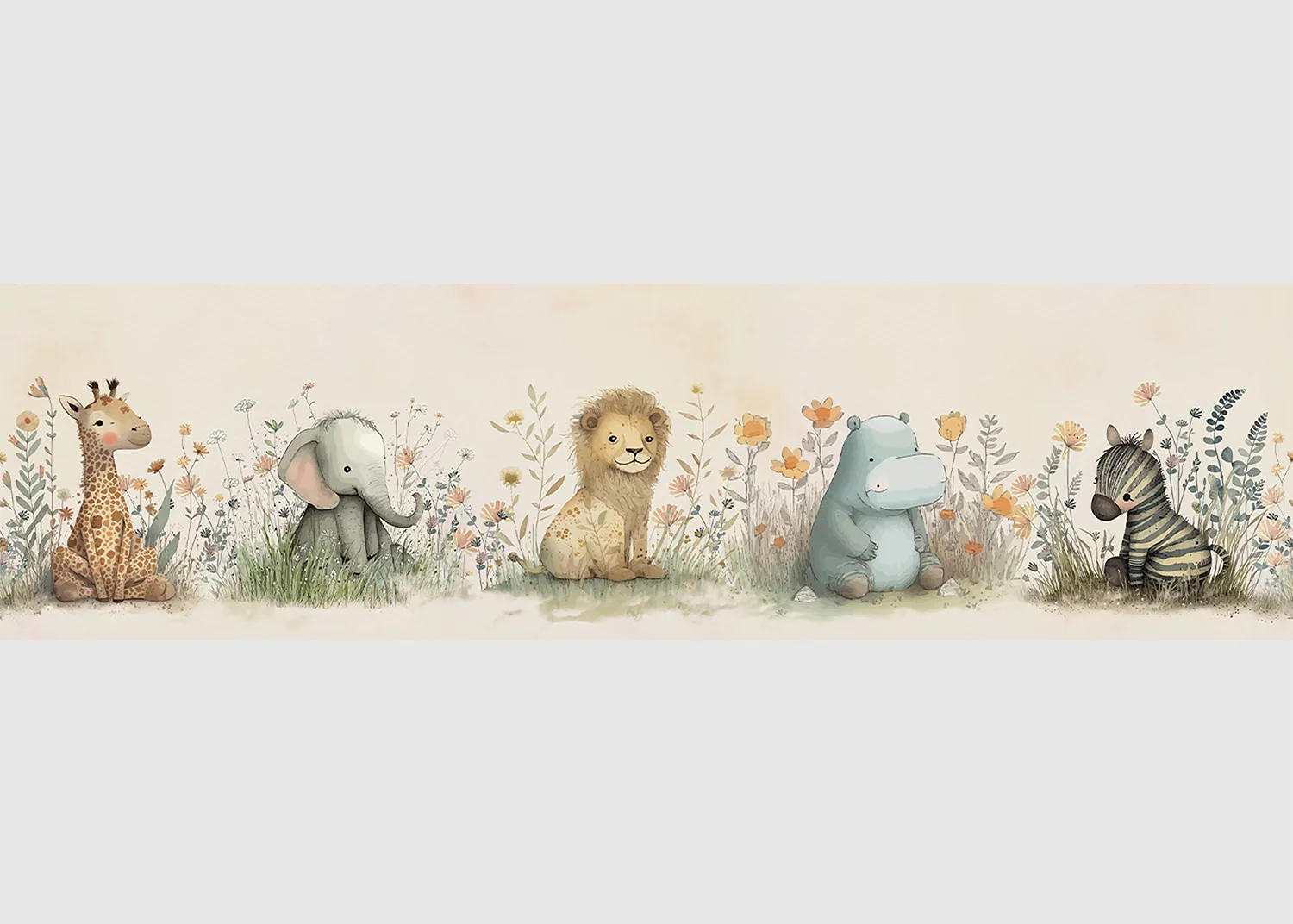Dětské bordury na zeď Roztomilá Akvarelová Zvířata