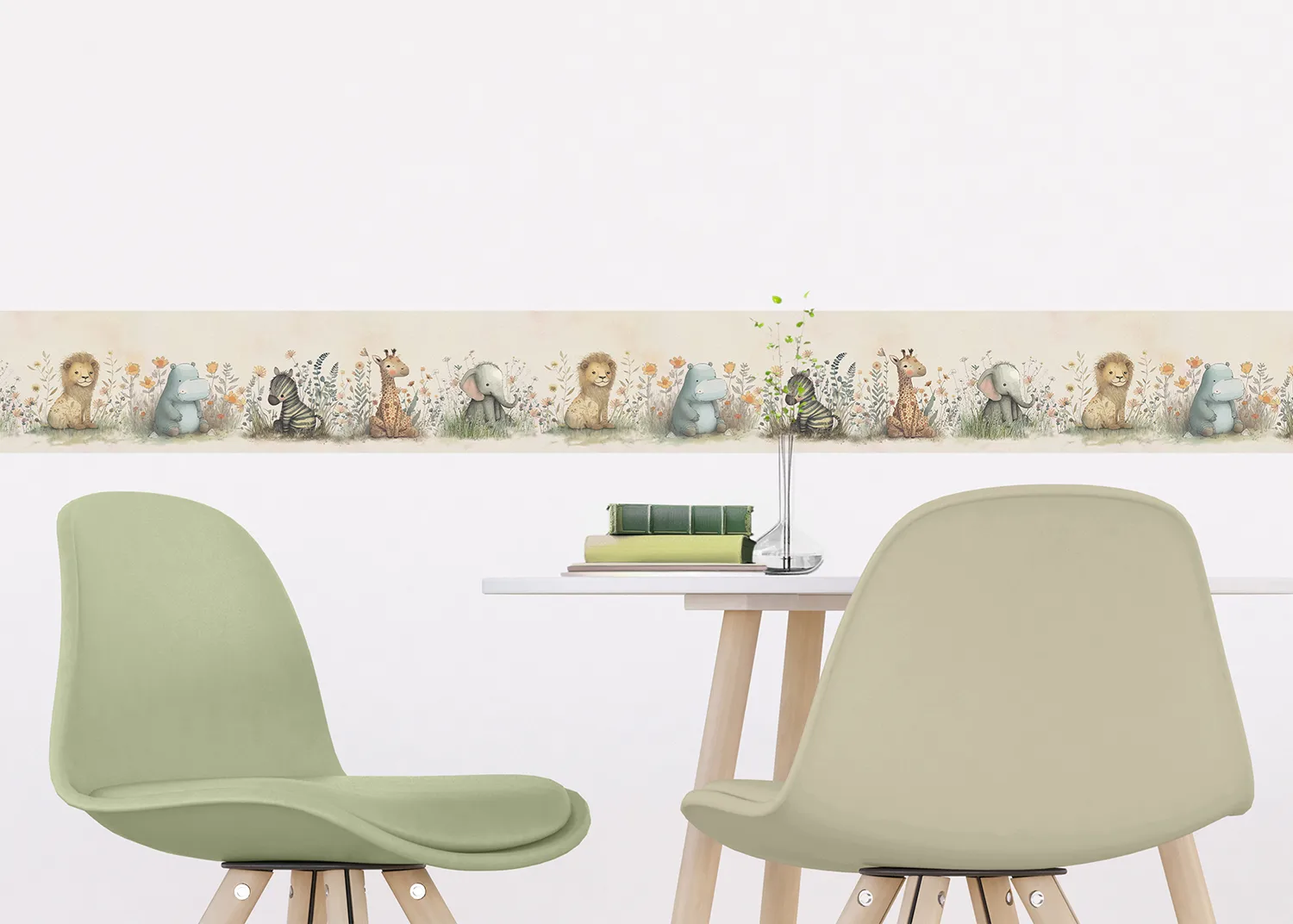 Rozjasněte pokoj svého dítěte s našimi bordurami na zeď Akvarelová Zvířata. Bordury jsou vytvořeny tak, aby do každého prostoru vnesly kromě nádechu hravosti také teplo a radost.