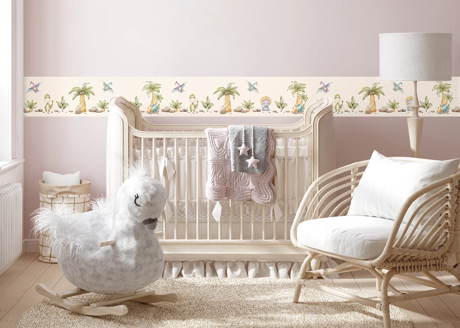 Rozjasněte pokoj svého dítěte s našimi bordurami na zed‘ T-Rex s Kamarády Na Béžové. Bordury jsou vytvořeny tak, aby do každého prostoru vnesly kromě nádechu hravosti také teplo a radost.