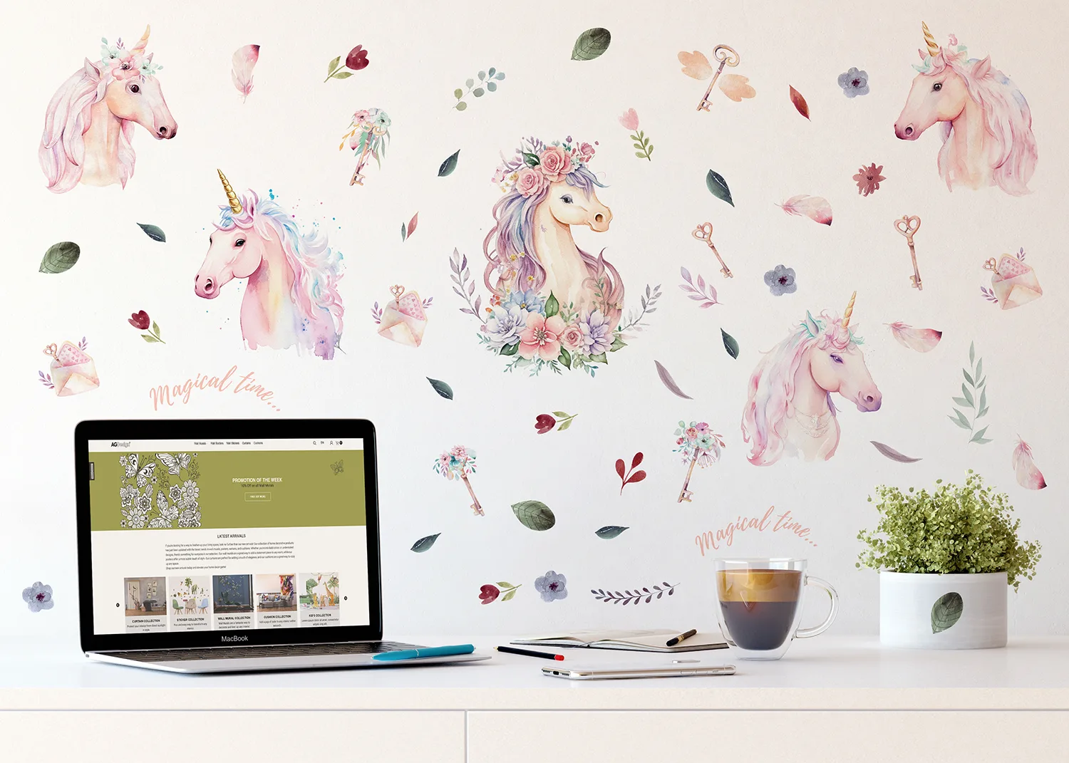 Rozjasněte pokoj svého dítěte s našimi nálepkami na zeď Akvarelový Jednorožec. Nálepky jsou vytvořeny tak, aby do každého prostoru vnesly kromě nádechu hravosti také teplo a radost.