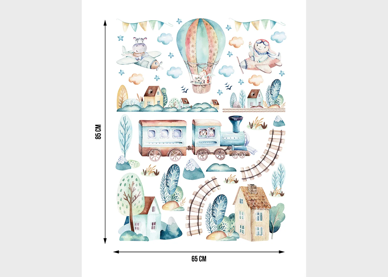 Díky svým vlastnostem přilnou naše samolepky k jakémukoli rovnému, hladkému a čistému povrchu bez potíží, a to bez ohledu na svoji velikost. Proměňte svůj prostor s našimi okouzlujícími nálepkami Akvarelový Vlak, v nichž se kombinuje kreativita, prémiová kvalita a ekologičnost.