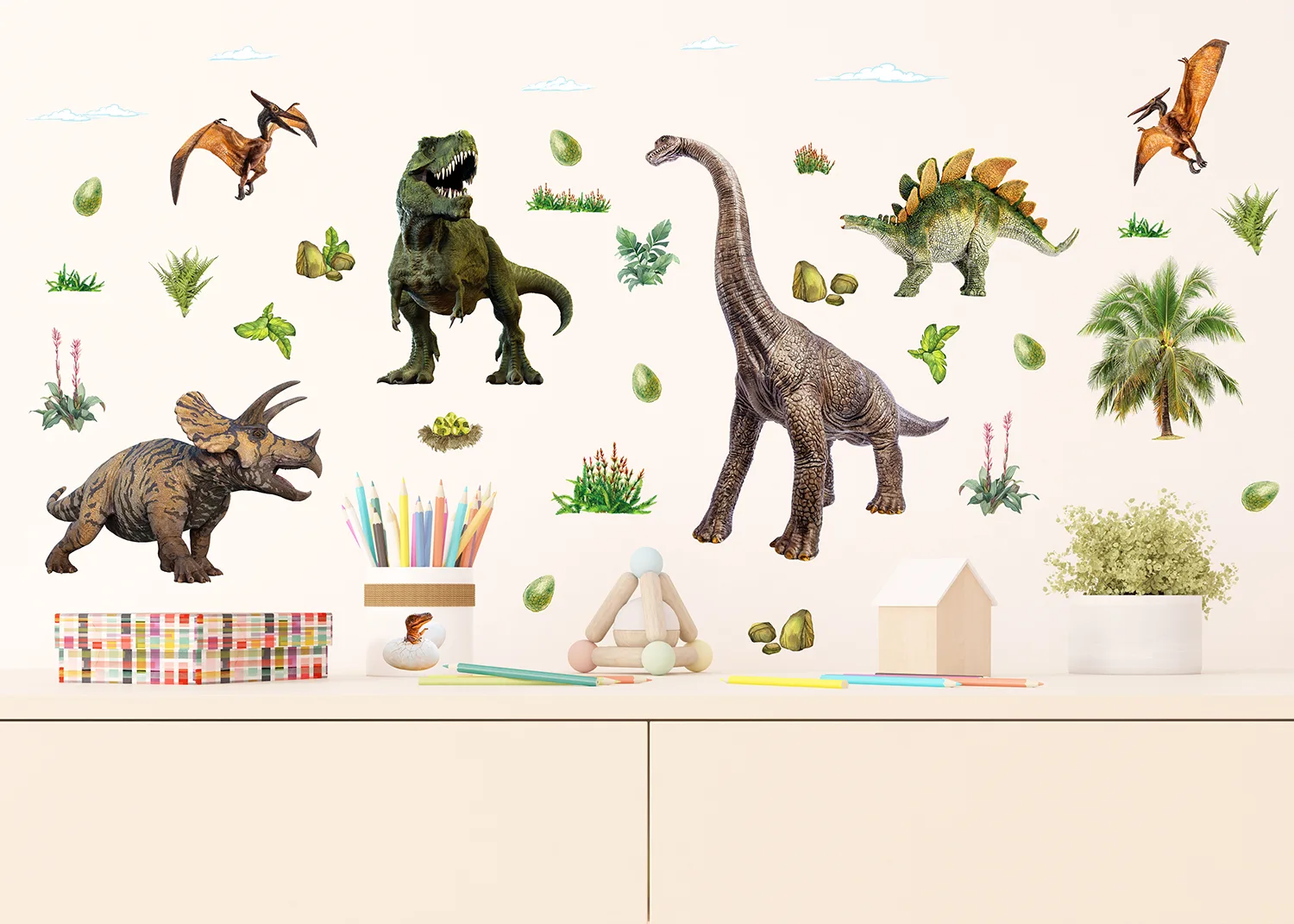 Rozjasněte pokoj svého dítěte s našimi nálepkami na zeď Dinosauři . Nálepky jsou vytvořeny tak, aby do každého prostoru vnesly kromě nádechu hravosti také teplo a radost.