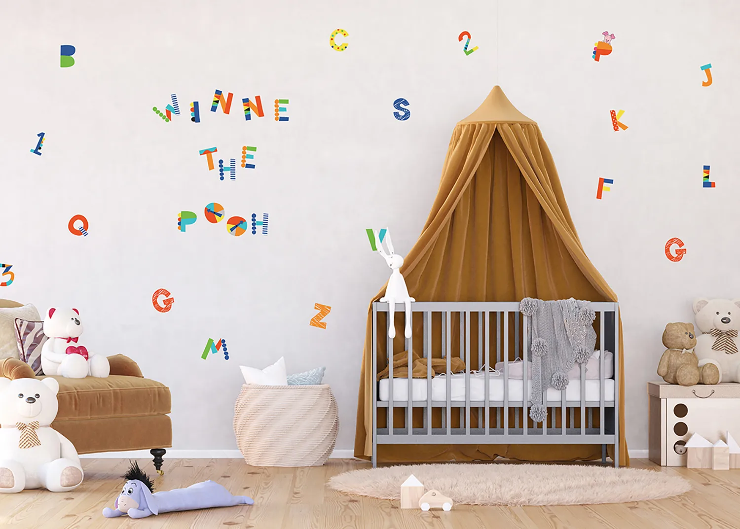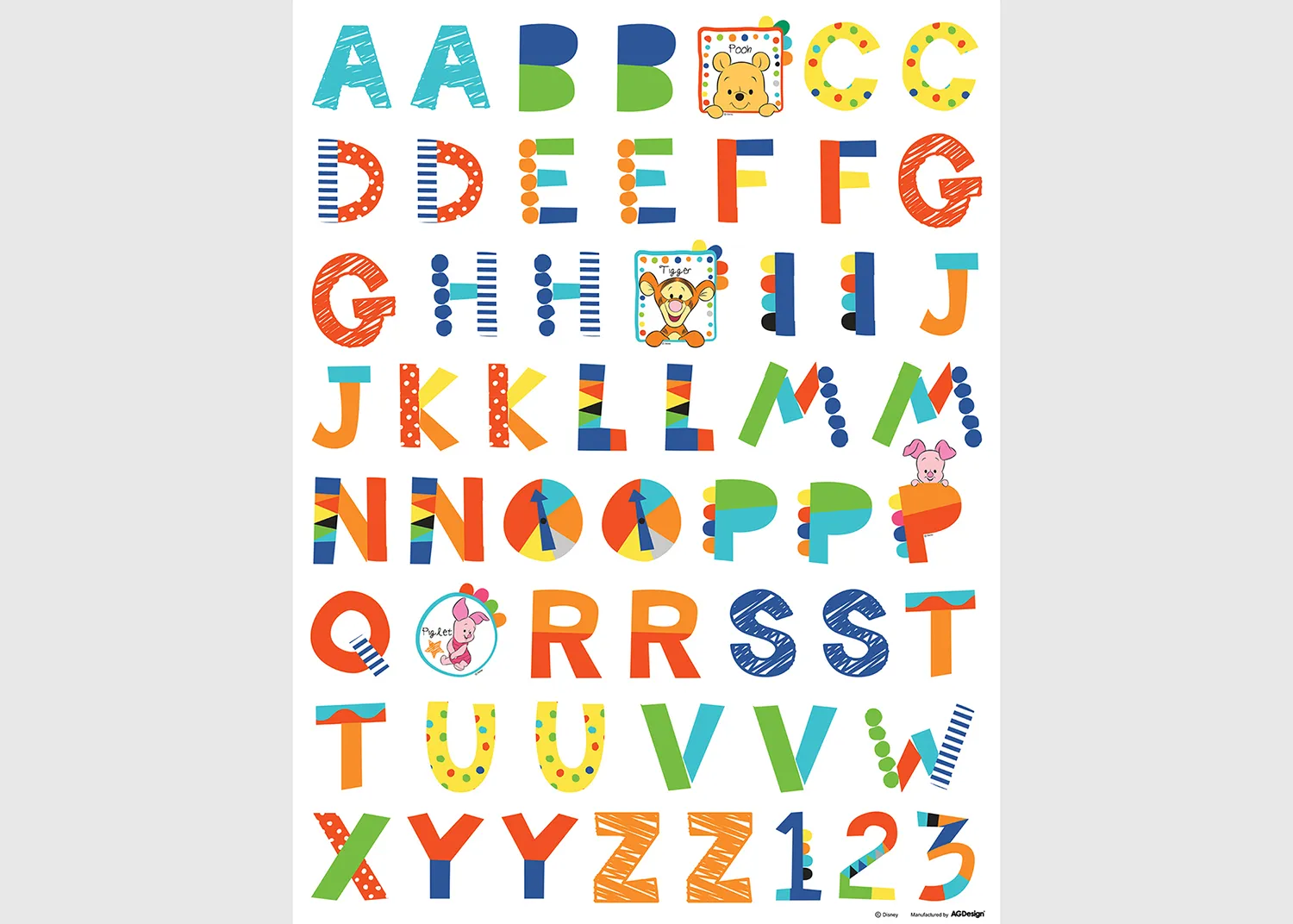 Dětské nálepky na zeď Disney Medvídek Pú – abeceda