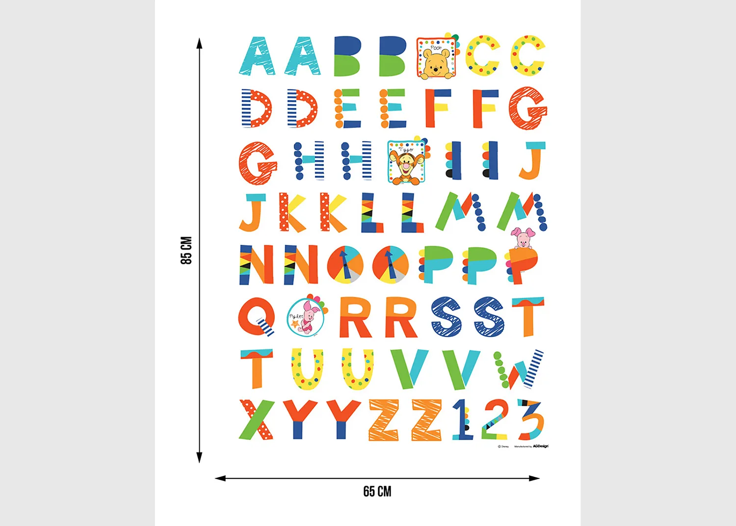 Dětská samolepka na zeď Disney Medvídek Pú – abeceda | 65 x 85 cm | DDK891