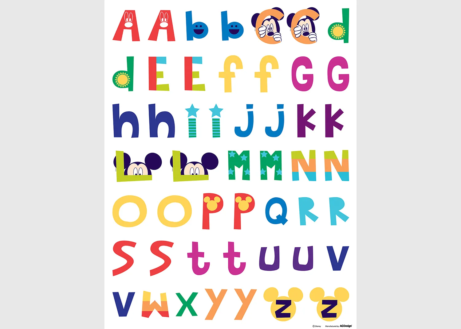 Dětské nálepky na zeď Disney Myšák Mickey – abeceda