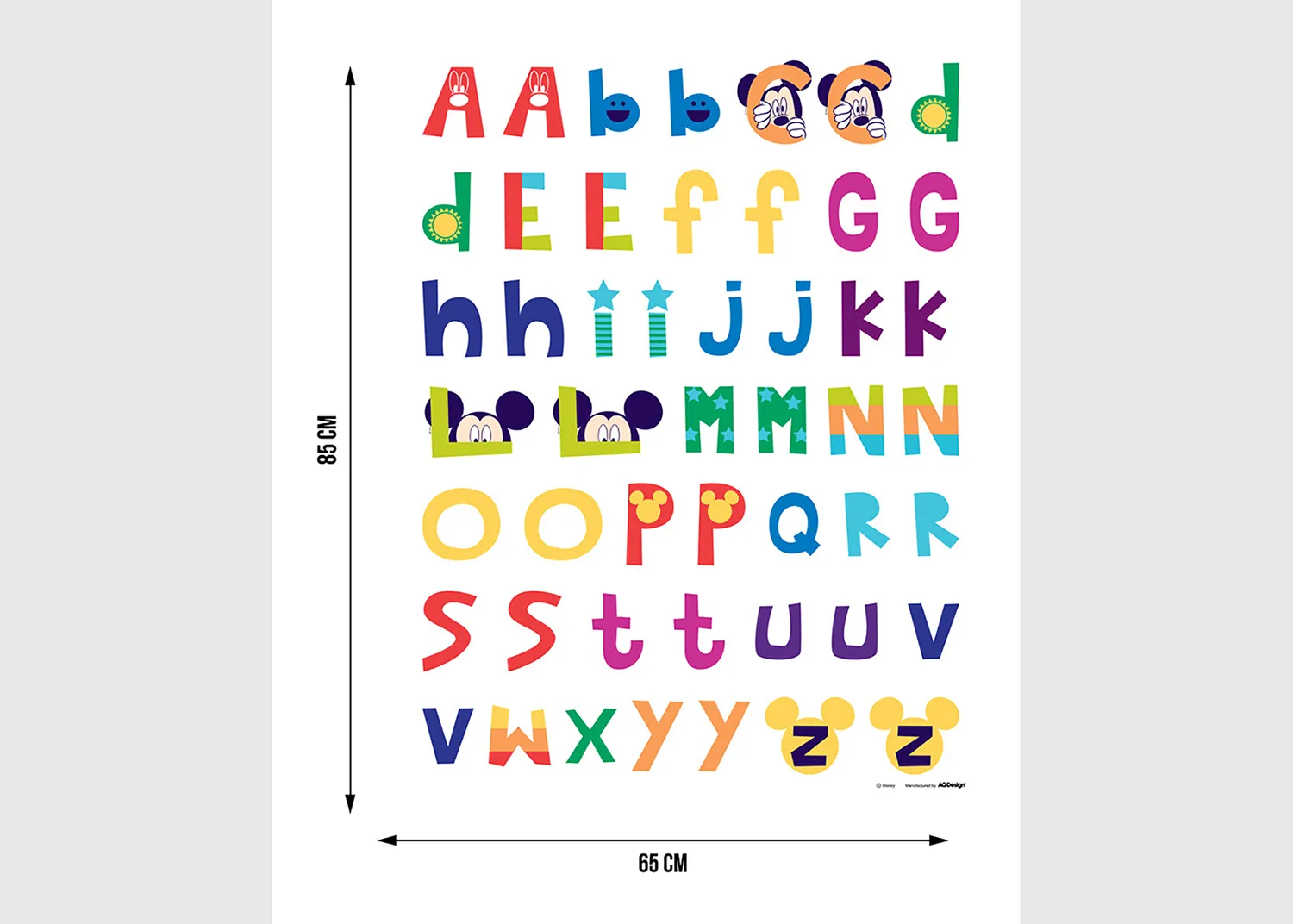 Dětská samolepka na zeď Disney Myšák Mickey – abeceda | 65 x 85 cm | DDK895
