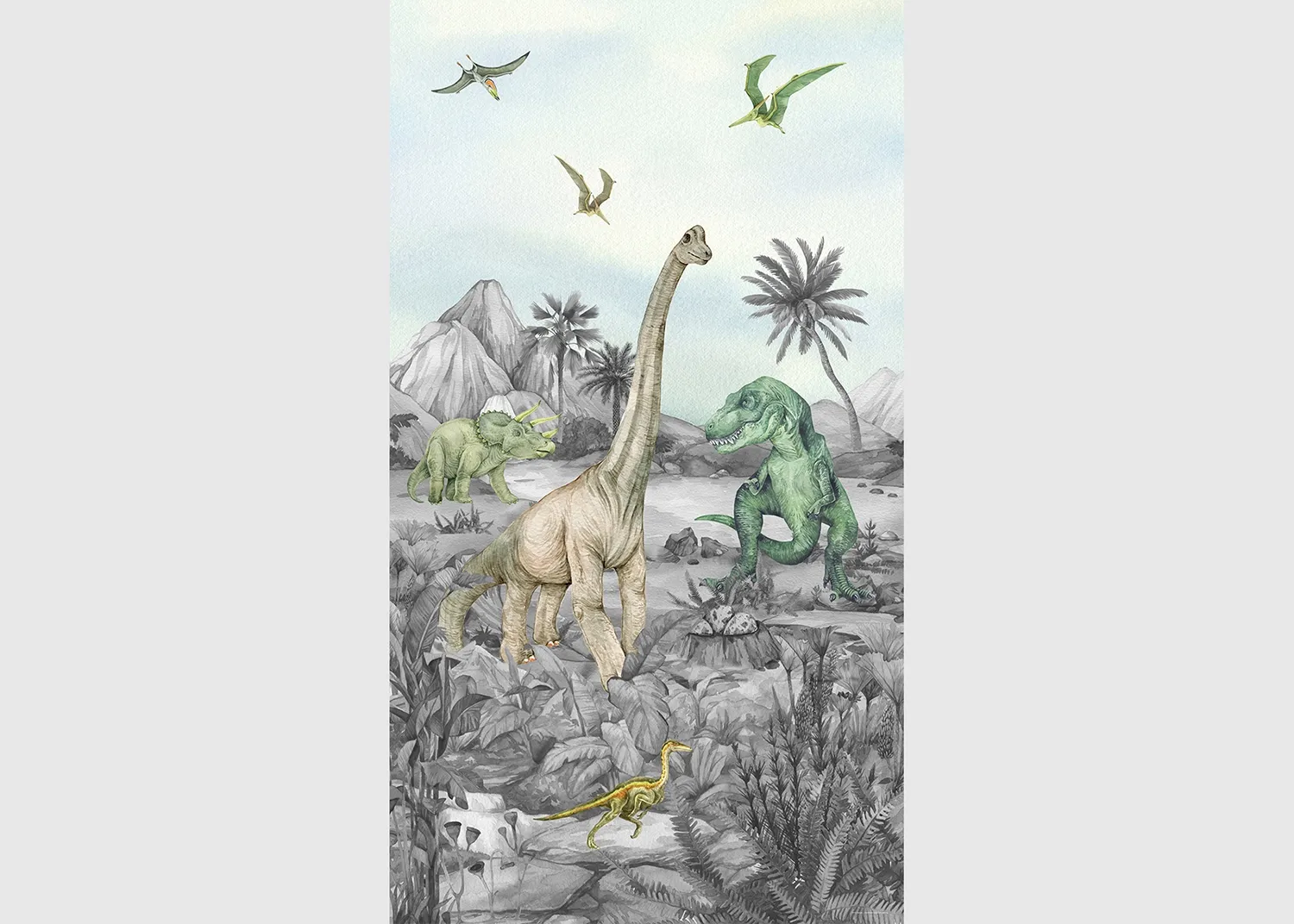 Proměňte pokoj svého dítěte s naší okouzlující fototapetou Pradávný Svět! Naše fototapety jsou ideálním propojením kreativity, kvality a ekologie a jsou ideální volbou pro všechny fanoušky pradávného světa.