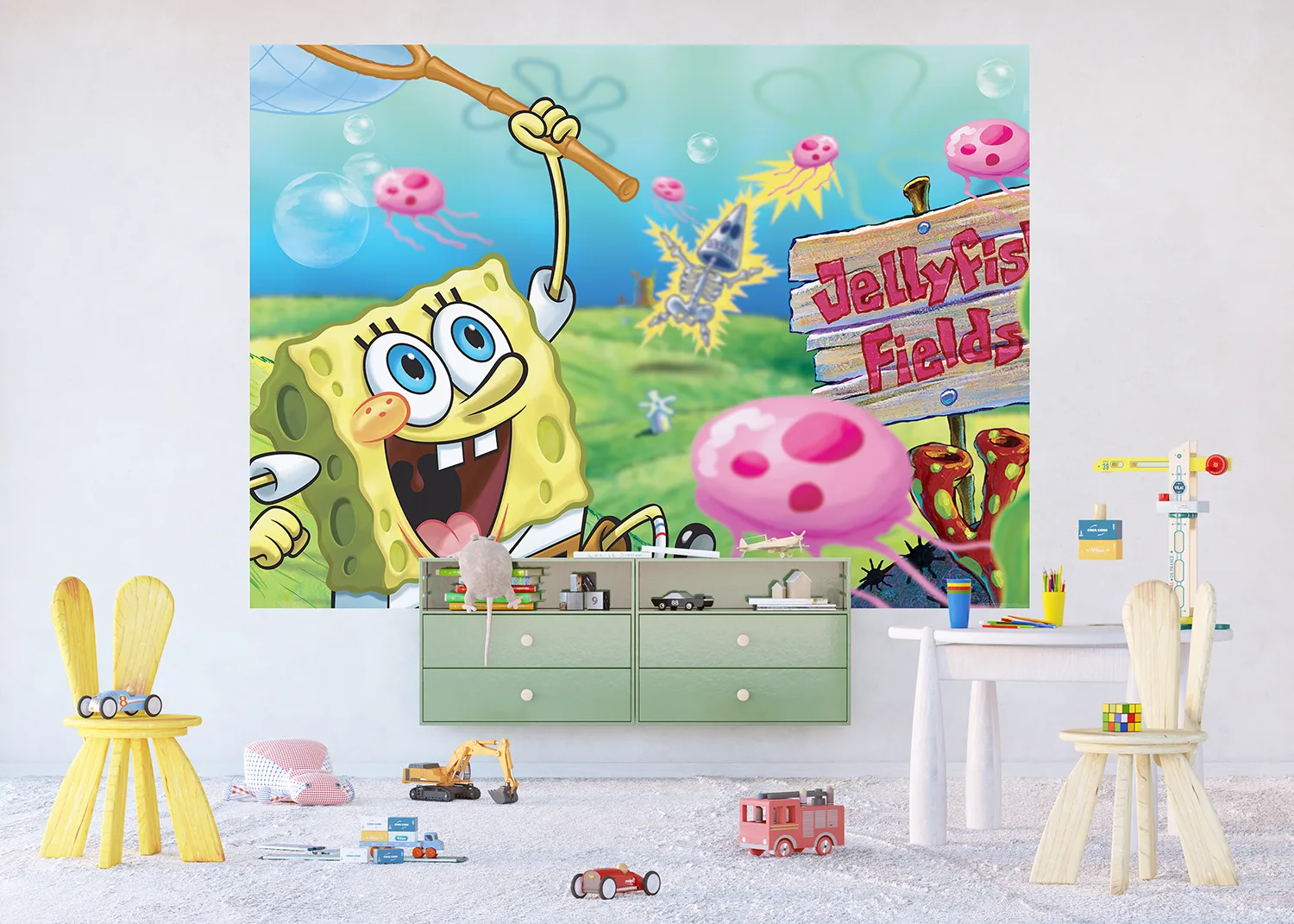 Rozjasněte pokoj svého dítěte s naší fototapetou Spongebob Chytá Medúzy, která je navržena tak, aby do každého prostoru vnesla kromě nádechu hravosti také teplo a radost.