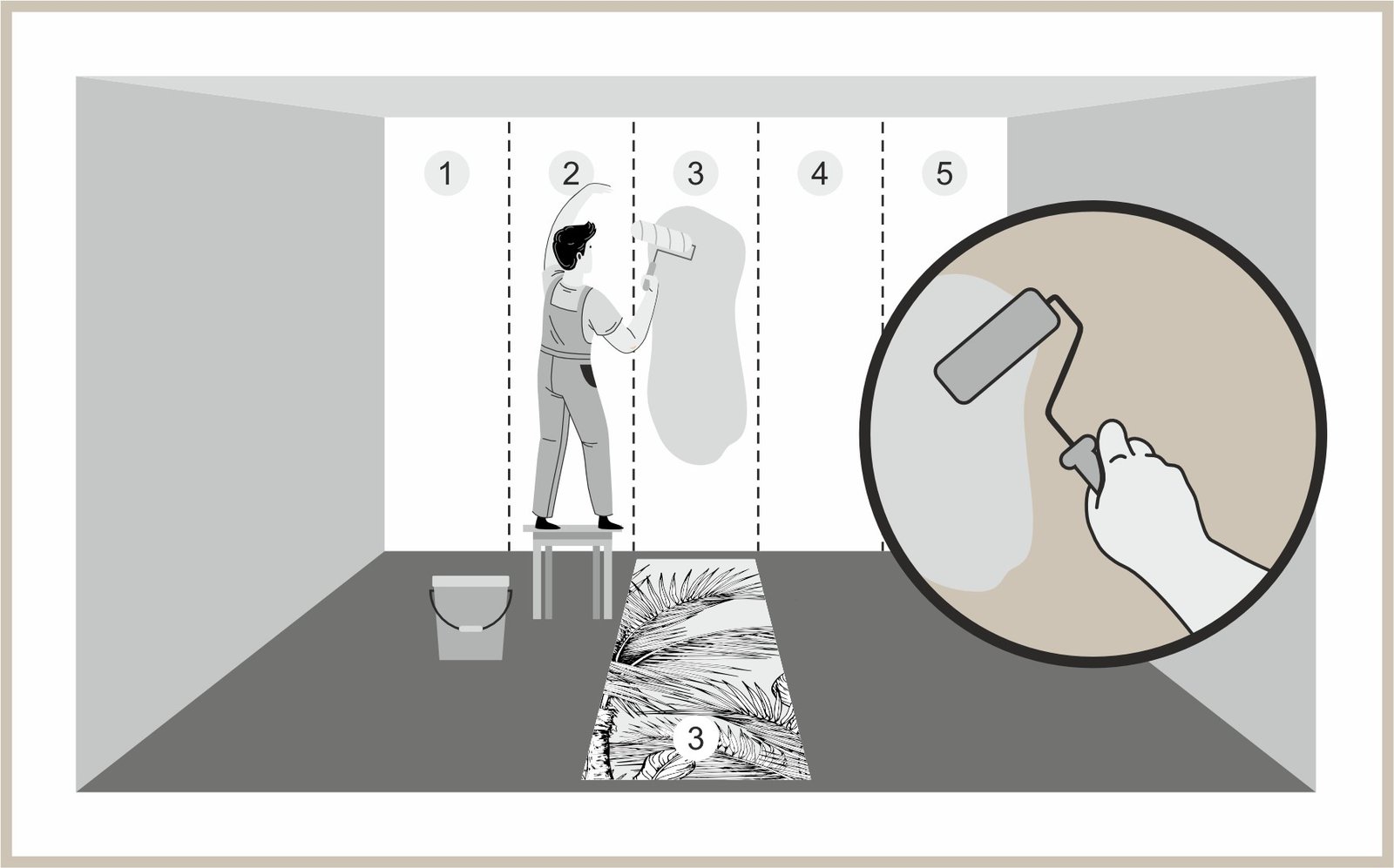 Velká výhoda vliesových tapet spočívá v tom, že lepidlo můžete nanášet přímo na stěnu a poté panely nalepit. Pomocí válečku naneste předem připravené lepidlo na vyznačenou pozici na stěně, od které chcete začít s lepením. Lepidlo je potřeba nanášet rovnoměrně.