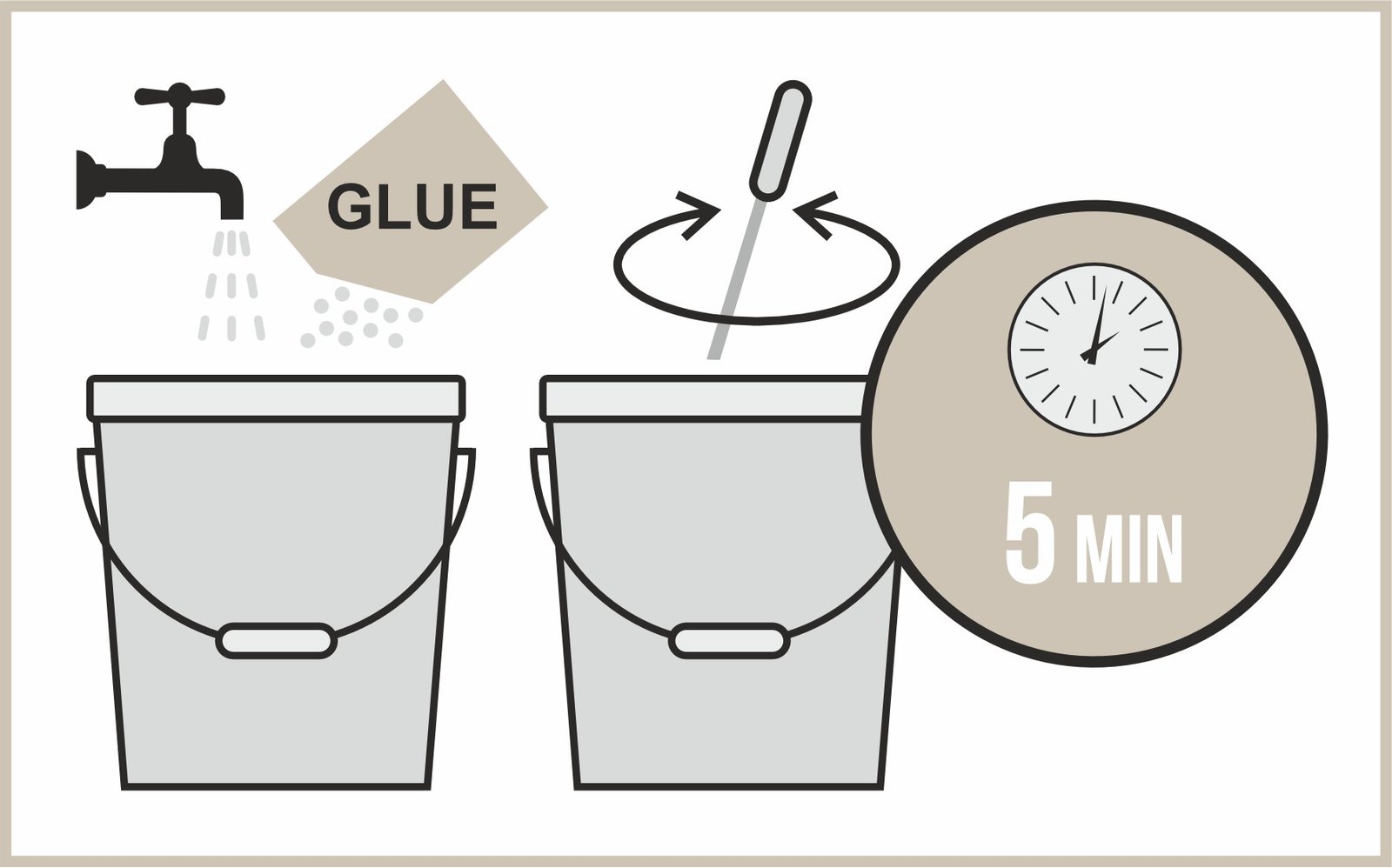 Potřebné lepidlo dodáváme k našim tapetám vždy zdarma a najdete jej v sáčku uvnitř balení. Dodržujte poměr lepidla a vody uvedený na obalu. Naplňte připravený kbelík vodou a pomalu přidávejte lepidlo v prášku za rychlého míchání. Směs míchejte až do dosažení dokonale rovnoměrné konzistence a pak ji nechte 5 minut bobtnat. Před použitím je nutné směs opět rozmíchat. Tím je lepidlo připravené k použití.