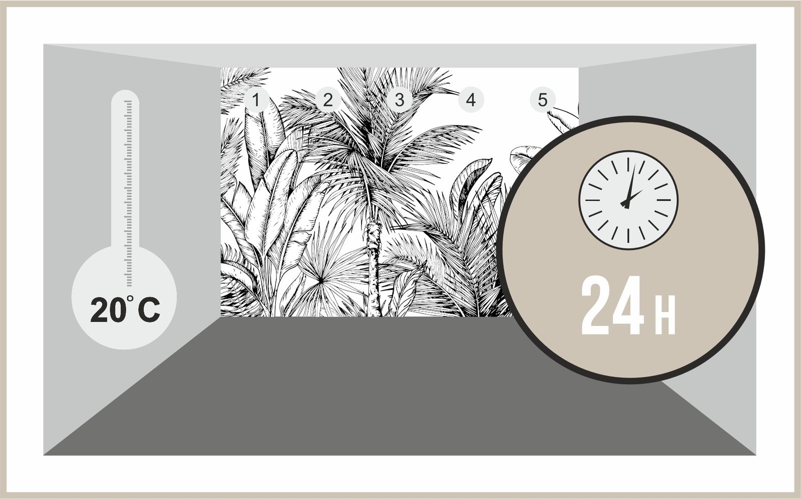 Fototapety schnou pomalu, nejlépe probíhá sušení při pokojové teplotě +20°C, se zavřenými okny a bez průvanu.