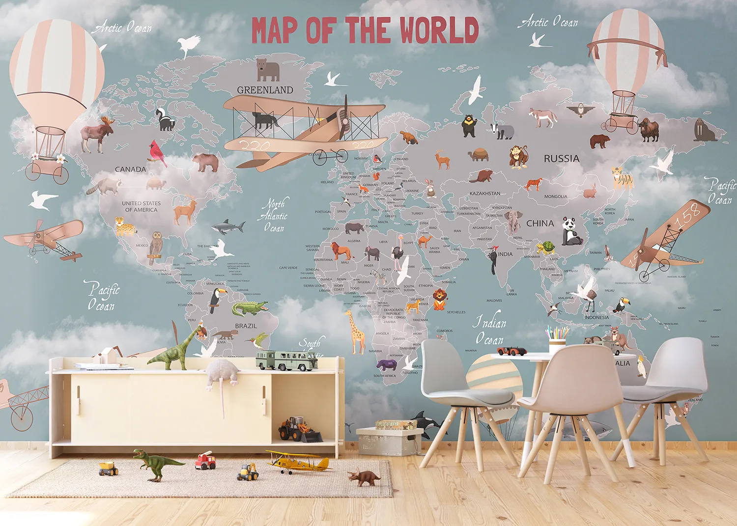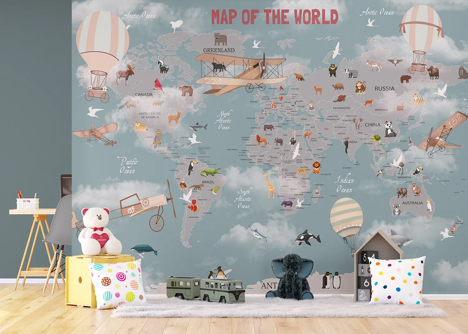 Rozjasněte pokoj svého dítěte s naší fototapetou Mapa Světa Zvířat, která je navržena tak, aby do každého prostoru vnesla kromě nádechu hravosti také teplo a radost.